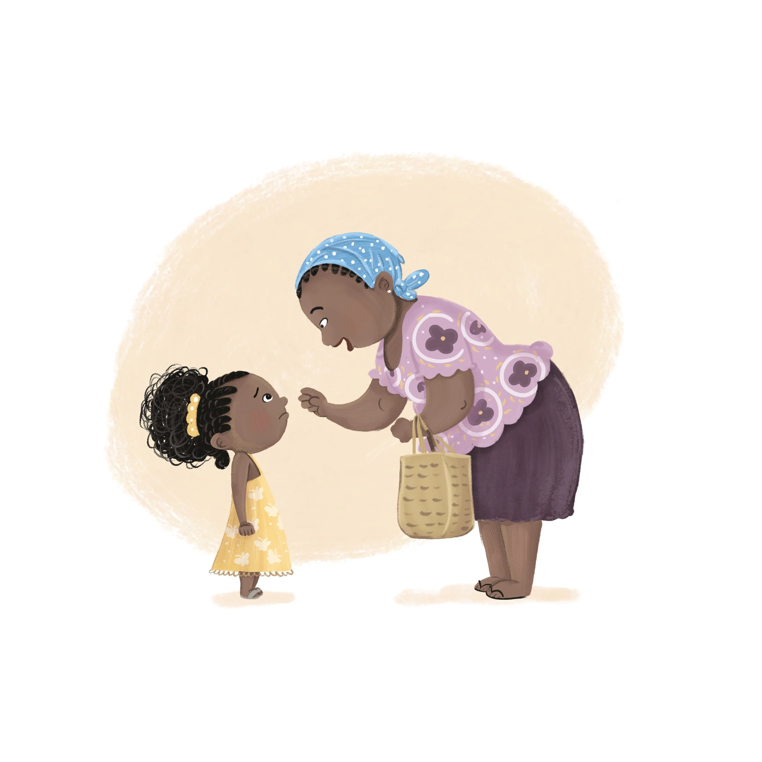 Tantrums are always unpredictable, happen at the worst time, and are often in public. On a walk, at the market, or getting new braids, Tawá is quick to cry “Waa Waa” for no apparent reason. The day becomes more and more exasperating for anyone near her. It’s not until bedtime when the exhausted grown-ups treat Tawa to their own cries, that the surprised little noise maker is finally subdued.