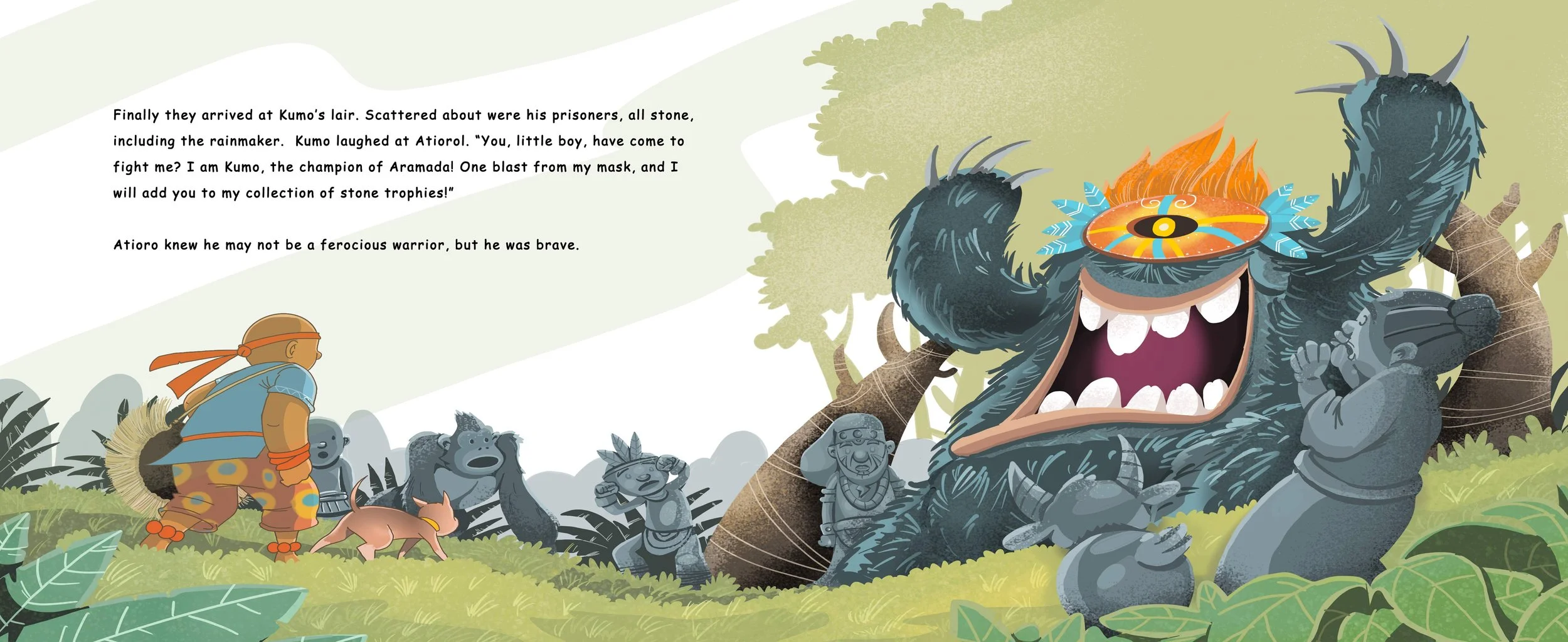 The small farming village of Ireke had an unusual drought. The village rainmaker was missing in the far away forest of Aramada! Atioro, the young village warrior was chosen to find the rainmaker before it gets too late. His journey through the mysterious forest creates a series of adventures.